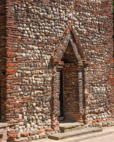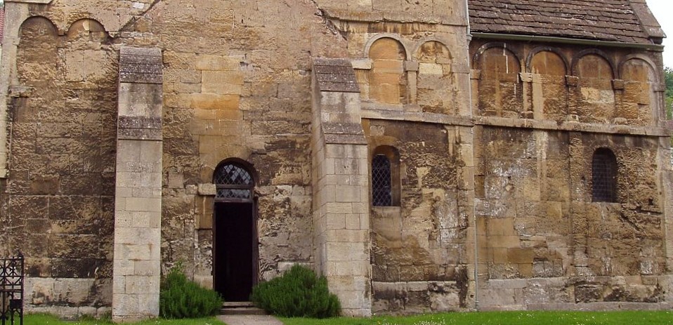 BUT how to portray Wilton when none of it remains? Such facts as we do know contribute mysteriously to build a picture of an entirely unique and exceptional place, both for the variety and prominence of its residents, which must have generated a distinctive atmosphere, and for the material fabric of its buildings. If Edith, wife of Edward the Confessor, had it rebuilt in stone it may have been of Norman design or of an earlier Anglo-Saxon style, a style remarkable for its arches, both rounded and pointed, its patterning and decorative use of Roman tiles, as the few surviving examples demonstrate.